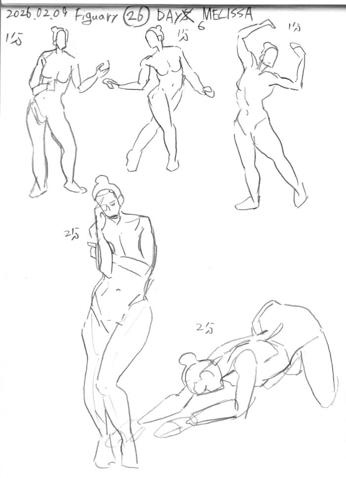 おはようございます。クニクニです。2月があっという間に終わってしまって、それからもう1週間経つなんて信じられません!2月に行われるクロッキーのデイリーチャレンジ”Figuary”を今週になってようやく28日ぶん終わらせました。