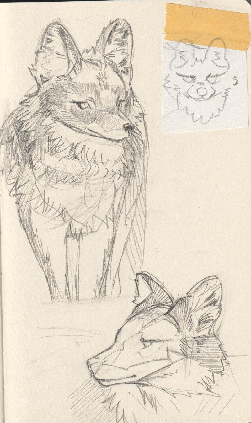 イヌ科のドールという動物を描く練習をしました。アカオオカミとも呼ばれるそう。オオカミと比べるとアゴが小さくて、鼻先がツンとしているところを意識すると描き分けられそうです。